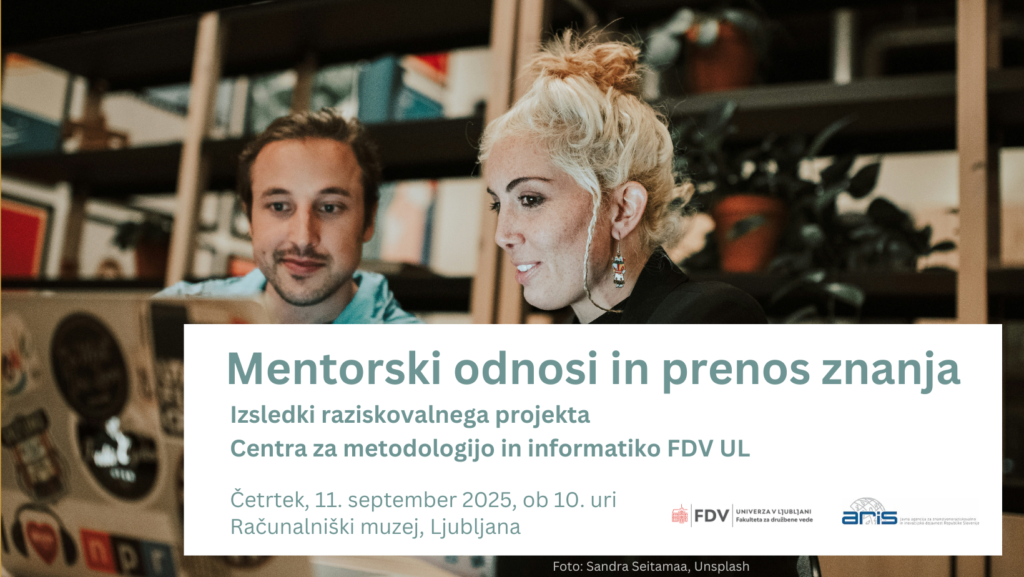 V četrtek 11. septembra 2025 se v Ljubljani (Računalniški muzej na Celovški 111) ob 10. uri prične strokovni posvet s predstavitvijo rezultatov raziskovalnega projekta Mentorski odnos v kontekstu znanstvenega sodelovanja in produkcije znanja, ki je 2020–2025 potekal v okviru Centra za metodologijo in informatiko FDV UL.